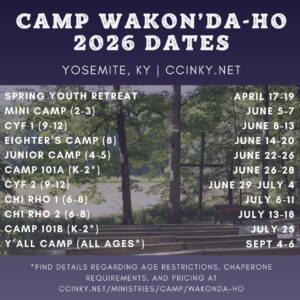 Your generosity helps children and youth of the Christian Church in Kentucky find faith and friendship through the outdoor ministry at Camp Wakon’ Da-Ho.